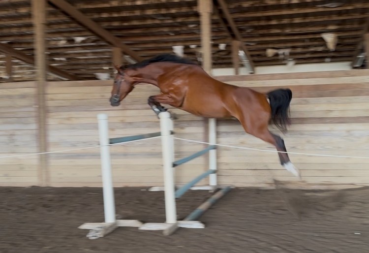 Riley is incredibly rhythmical and balanced. He is super elastic, his rideability is unparalleled and his jump is very round with classically good technique. As a 5yo he has been showing in the 3ft USHJA hunters. He does exceptionally well, including wins in the hack.