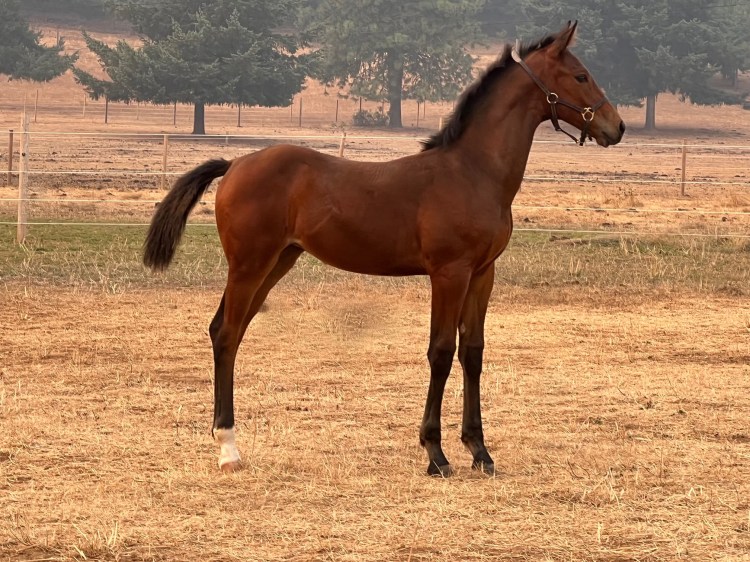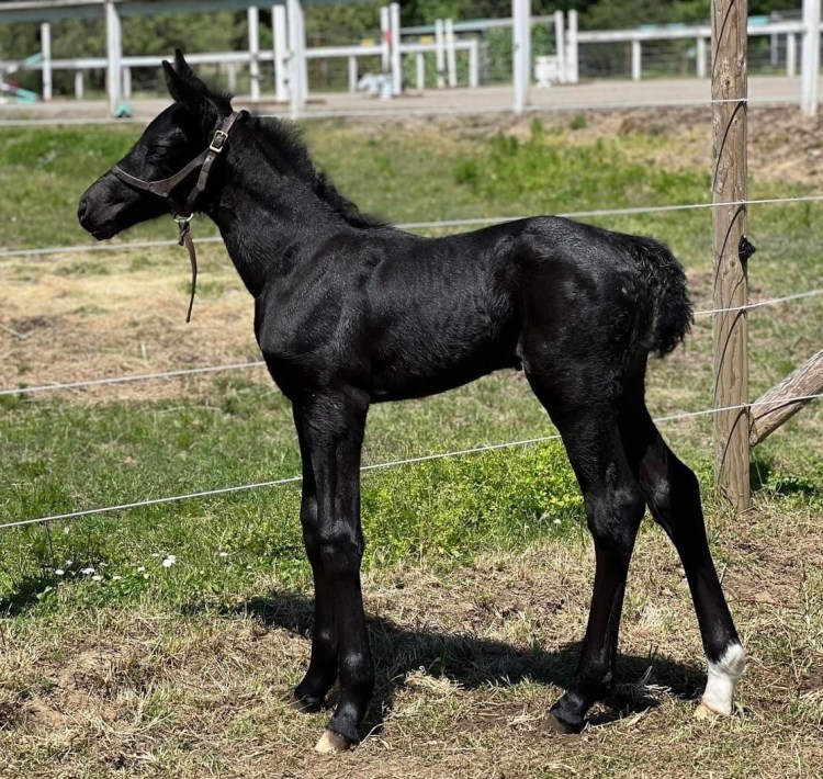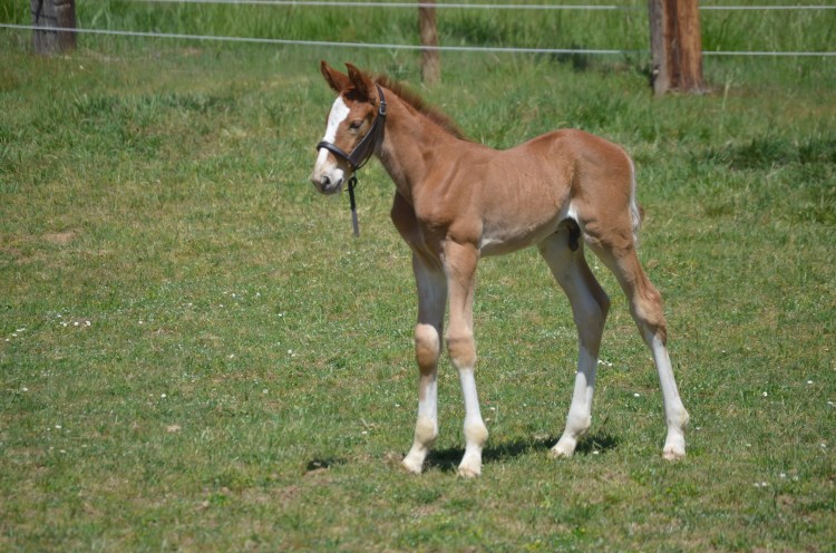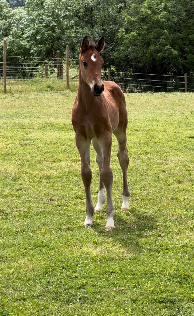 “Finn” was bred by Wild Turkey Farm in Oregon. She descends from one of the most successful dam lines in Belgium, the Sananta; BWP stam 80. Finn is still a young mare but her production so far has exceeded expectations.