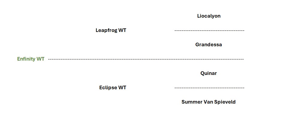Finn’s dam Eclipse WT is the only daughter of the exceptional Summer van Spieveld (1.60m sj). Summer is a two-time World Cup winner, a two-time World Cup Finalist, and a Nations Cup competitor. On top of her outstanding sport accomplishments Summer has also produced 1.60m show jumper Vedette van Spieveld (by Phin Phin). This is also the direct dam line of Falco van Spieveld who was fourth in the Pan American games.